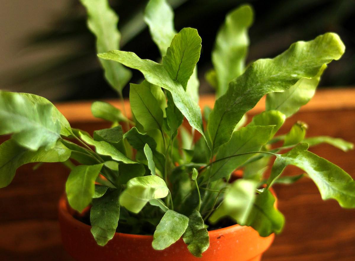 This graceful fern has blue-green fronds and stays attractive year-round. It thrives in humid bathrooms, but if that’s not possible, mist regularly and keep the soil moist — though never waterlogged.