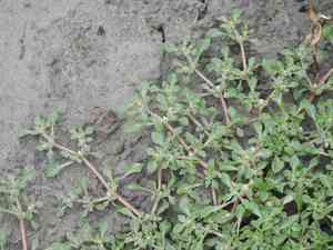 Smooth joyweed, originally from Central and South America, typically grows low to the ground in wet or saline environments. It has also spread to the southern United States, India, and Southeast Asia.