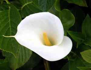 The plant can be identified by its tall, cylindrical spathe, which wraps around the spadix that extends beyond it in a whip-like structure. The leaves are typically large, trifoliate, and have a glossy appearance.