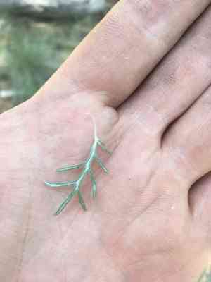 Artemisia carruthii can be identified by its finely divided, gray-green leaves and its small, inconspicuous yellowish or whitish flowers. The plant has a characteristic sage-like aroma.