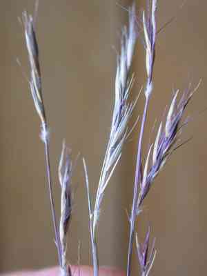 Bouteloua eriopoda can be identified by its distinctive curly leaves and unbranched flowering stems. The flower spikes often have a woolly appearance due to brownish curved awns.