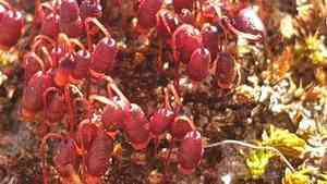 *Bryum coronatum*, commonly known as Bryum moss, thrives in rock gardens and features tiny, appealing multi-pointed leaves. It has a distinctive red or yellowish-green hue and stays very low to the ground.