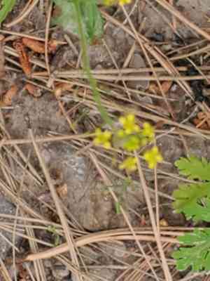 Mountain tansymustard can be identified by its finely divided, feather-like leaves and small yellow flowers arranged in clusters. The plant has slender stems and grows in disturbed or well-drained soils.