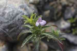 This plant can be identified by its lance-shaped, crenulated leaves and its distinctive blue to purple tubular flowers. The flowers typically appear in clusters.