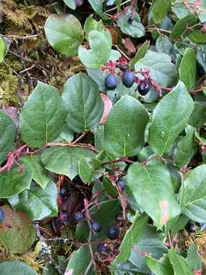 Salal (Gaultheria shallon) is a plant native to western North America, often found growing alongside Western poison oak. Both its leaves and berries are edible and can act as an appetite suppressant. The berries are commonly used in making jams and pies.